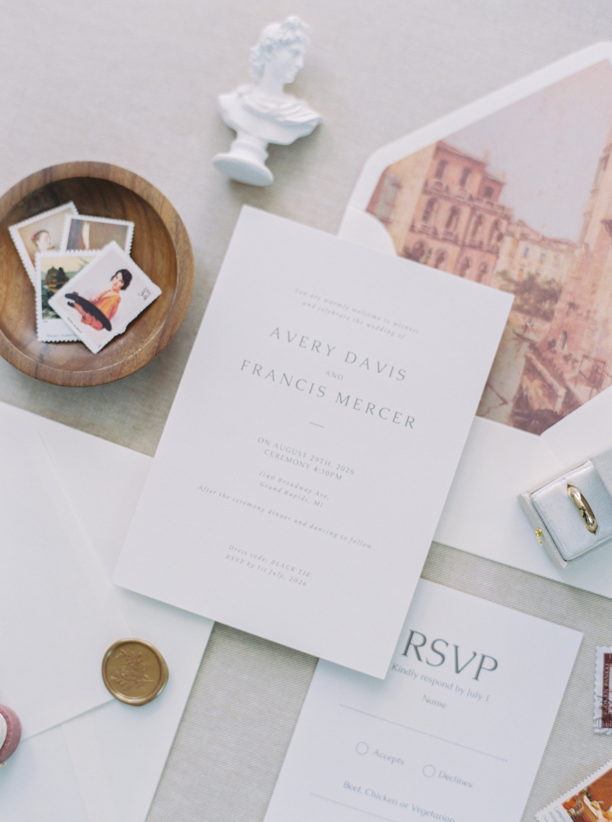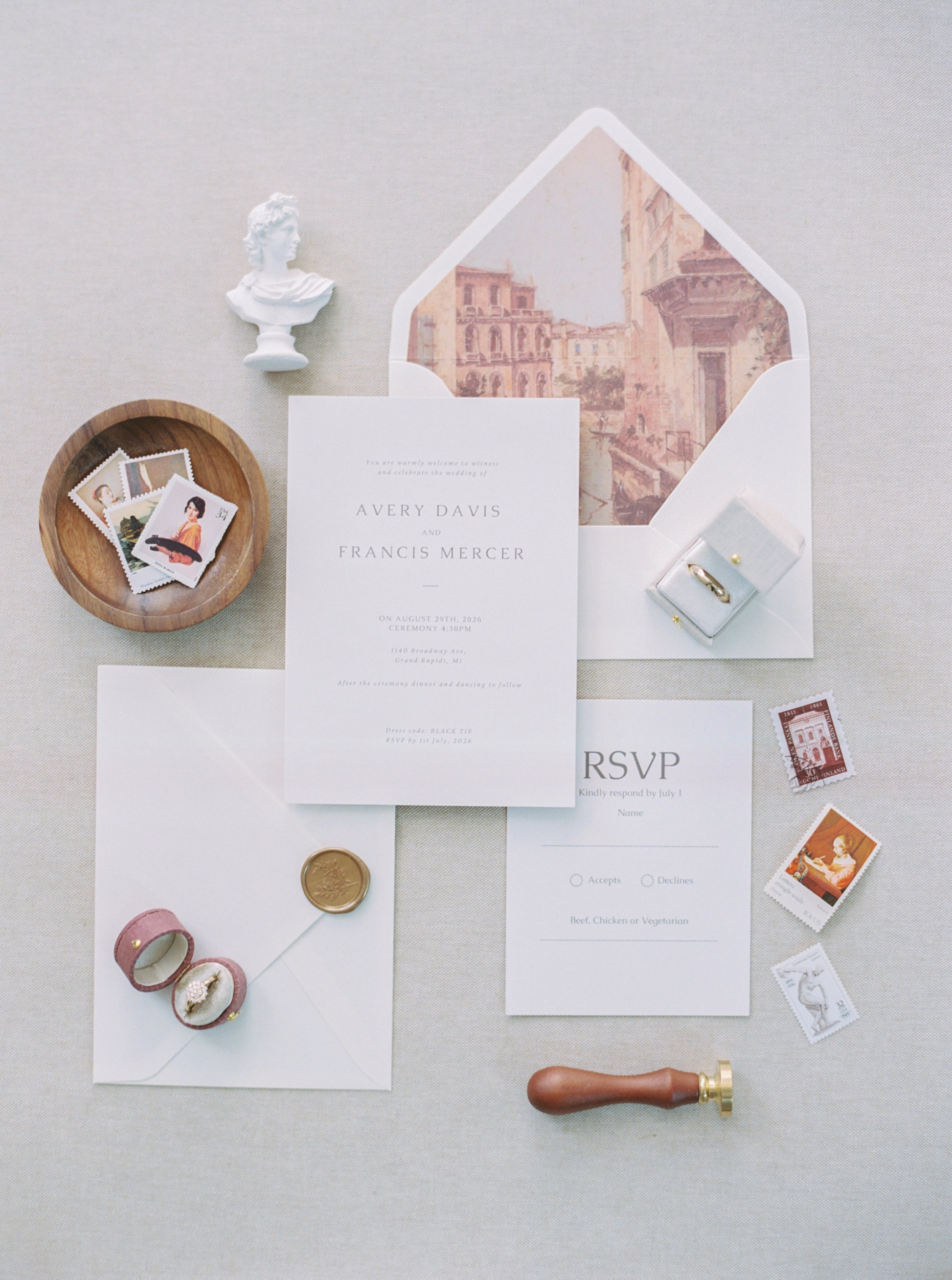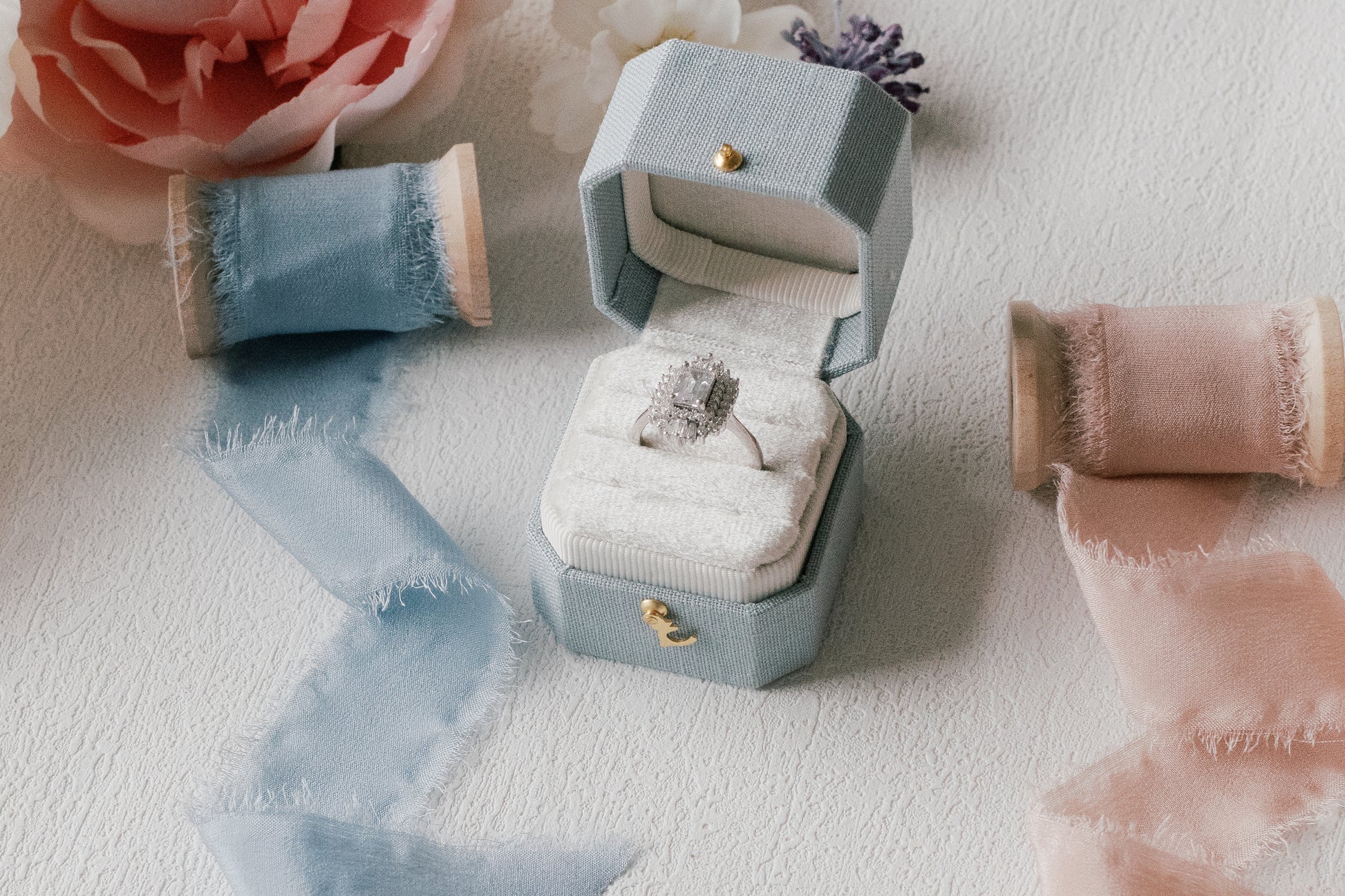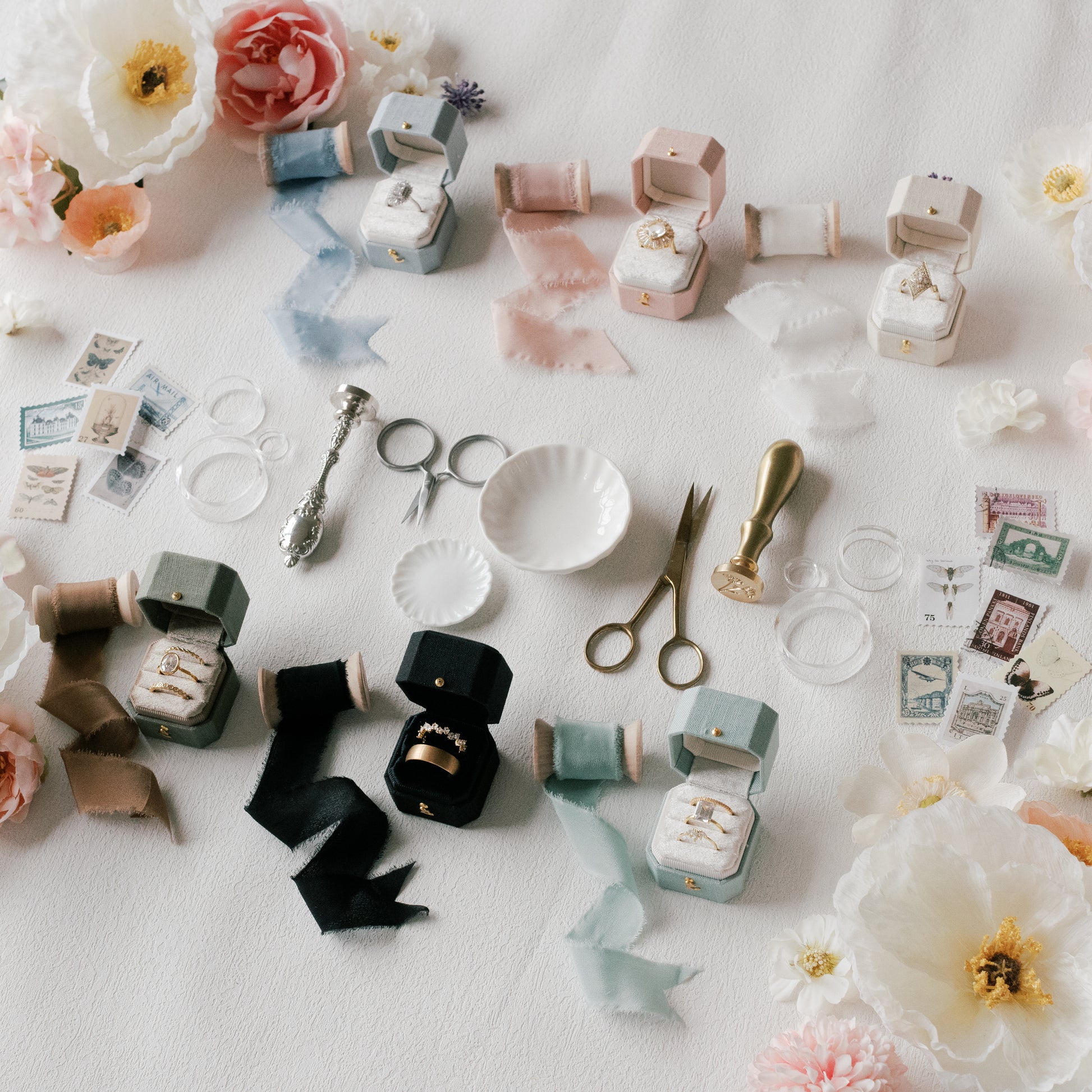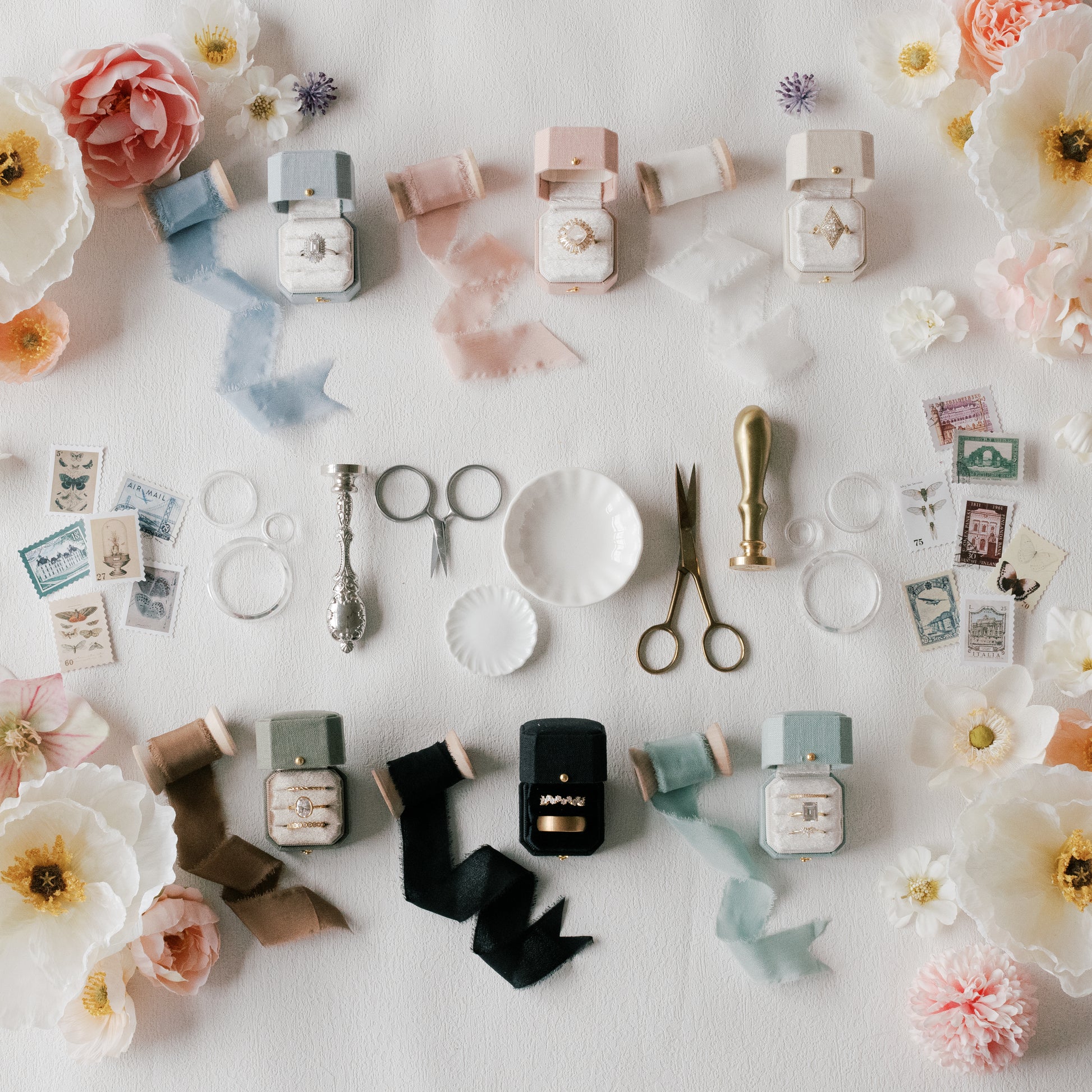 Ready to take your flat lay styling to the next level? You're going to love making flat lays with this kit. I know exactly what its like to show up to a wedding and be expected to make magic with just a ring and invitations. Here is the secret to a successful wedding day flat lay… You need to bring your own styling kit! I’ve curated these kits with real wedding days in mind. Don’t see a kit that is exactly what you were hoping for? Let me customize one for you! You'll receive all items in the photos excluding background, flowers and rings.