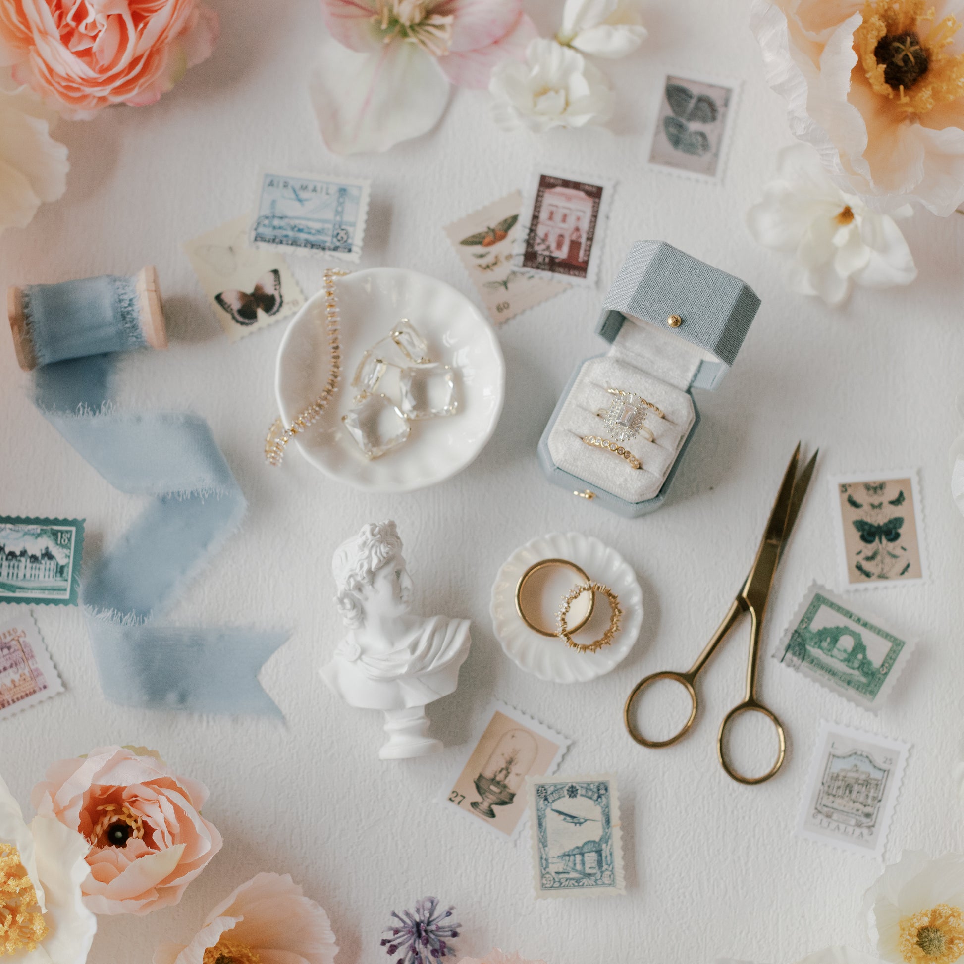A flat lay styling kit that will make your next wedding day flat lay easy! A stunning collection of styling props you'll love photographing!